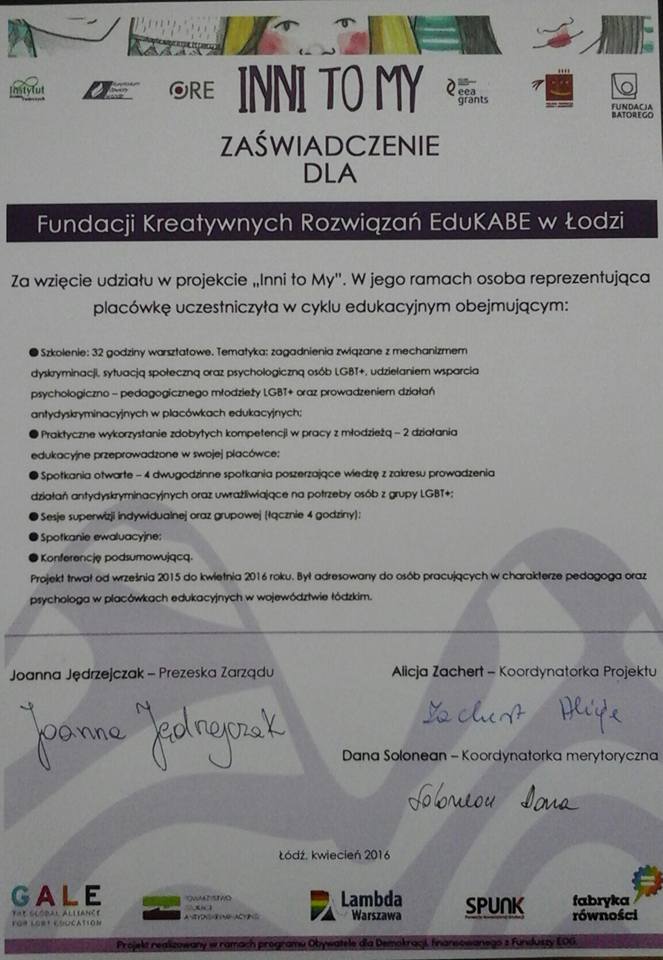 14 kwietnia odbyła się konferencja podsumowująca projekt „Inni To My”, w którym brały udział edukatorki Fundacji EduKABE. Refleksje edukatorek na temat projektu znalazły się również w publikacji.
