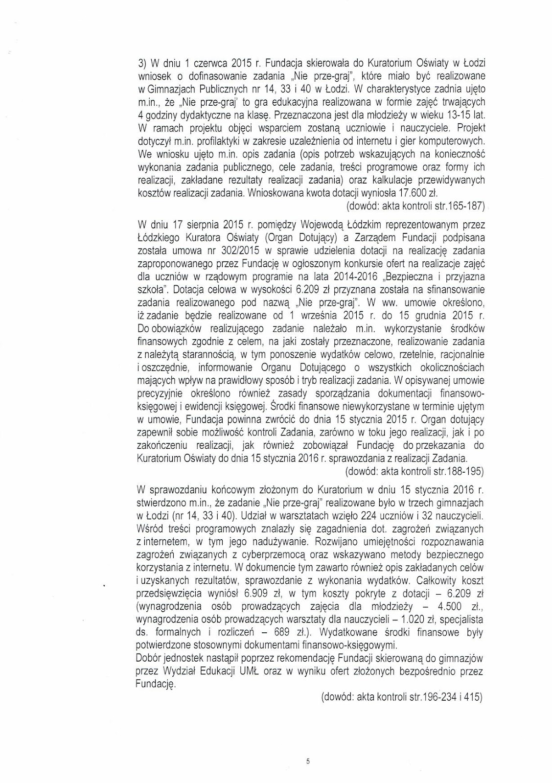 W związku w przeprowadzoną kontrolą numer P/16/070 – Przeciwdziałanie e- uzależnieniu dzieci i młodzieży przez Najwyższą Izbę Kontroli Delegatura w Łodzi przesyłamy w załączeniu Wystąpienie Pokontrolne. Kontrola NIK potwierdziła, że w działalności Fundacji EduKABE nie ma żadnych nieprawidłowości, a w związku z tym Najwyższa Izba Kontroli odstąpiła od formułowania wniosków pokontrolnych.
